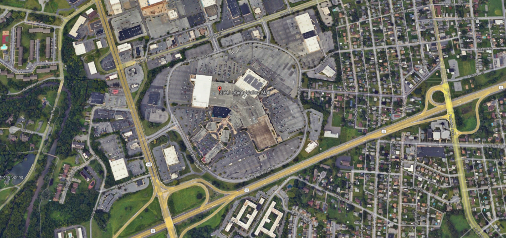 Site is located at the corner of Grape Street and Mall entrance road between Red Lobster and Michael’s. It is not inside Lehigh Valley Mall Ring Road.